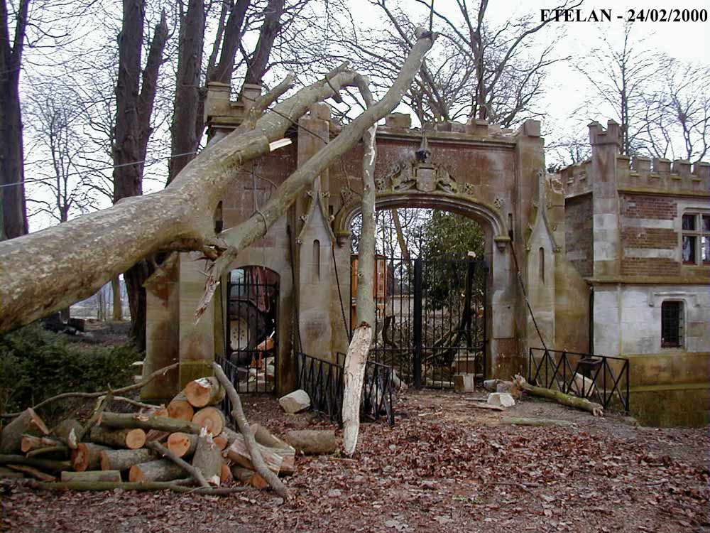 La tempête qui sévit sur toute l’Europe en décembre 1999, balaya d’un seul coup de vent l’allée «cathédrale» qui menait à la grille du château, abattant d’un même élan une partie de la barbacane.